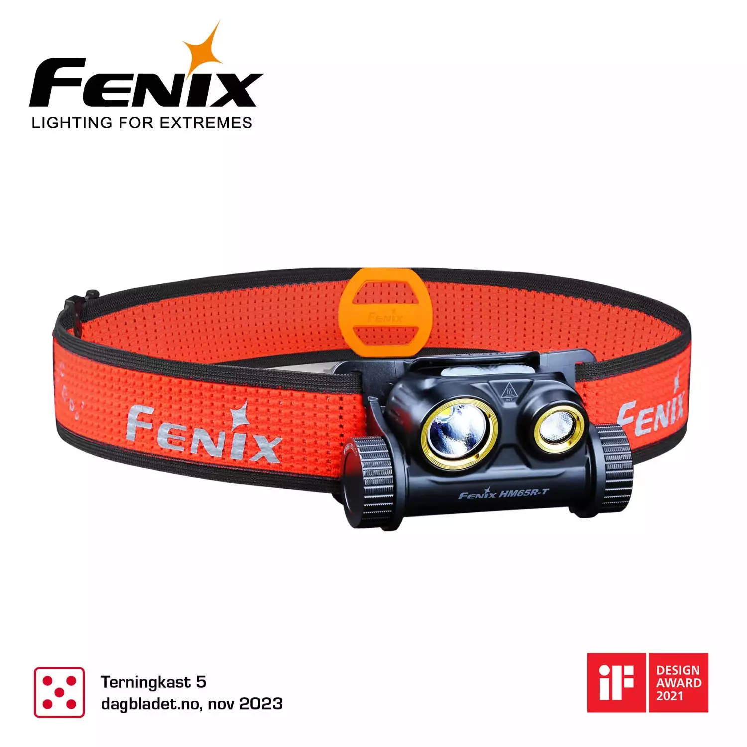 Fenix HM65R-T er en oppladbar hodelykt designet for løping. Hodelykten er laget av ultralett magnesium og er kulderesistent -35° til 45°C. Flom og spotlys kan slås på samtidig for å levere maksimal lysstyrke på 1500 lumen og en langtrekkende lysstråle på 170 meter. Brukt separat kan spotlyset levere 1300 lumen og flomlyset kan levere 400 lumen.